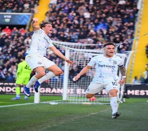 比赛开始后国米便立马进入进攻节奏,第5分钟,路易斯-恩里克右路传中,迪马尔科凌空抽射稍稍偏出;第15分钟,比塞克弧顶处横向带球射门,奥科耶将球化解;第20分钟,泽林斯基一脚直塞送到禁区,埃斯波西托精彩的脚后跟做球,劳塔罗扣过防守捅射破门,1:0!劳塔罗这赛季已经在意甲打进11球,在五大联赛过去的7个赛季中,仅有这4位球员的进球数全部上双;除了哈兰德,姆巴佩和凯恩,第4位恰恰就是劳塔罗。